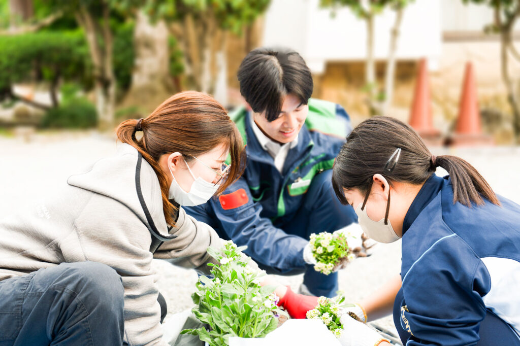 作業中は「もっと土入れる?」「難しいな…」と話しながらも、協力し合って取り組む姿が印象的でした。学生生活の話題でも会話が弾み、作業後は「植え替えが楽しかった」「お話が楽しかった」との感想も。