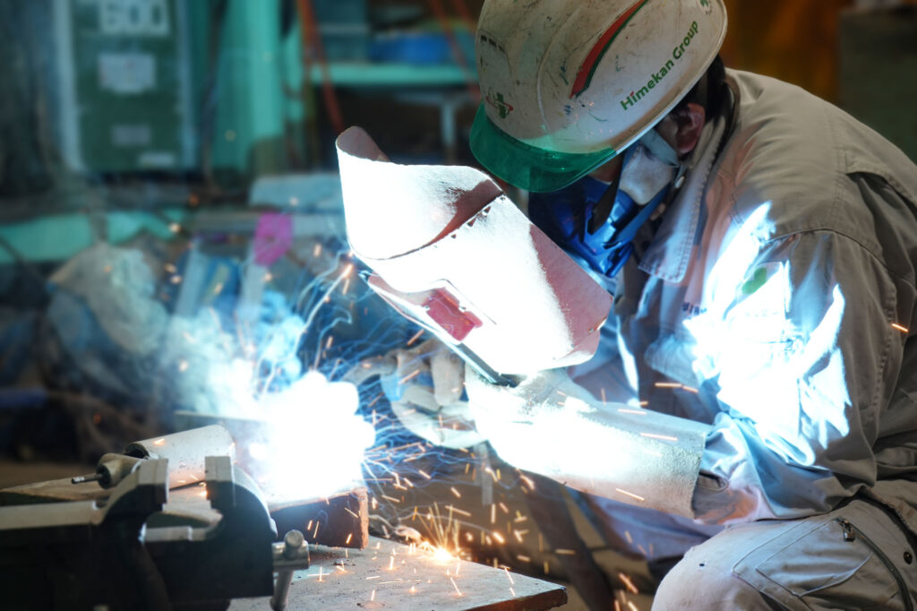 プレートの取り付け作業は、普段バッカン溶接や機械修理を担当しているメンテナンススタッフが実施しました。