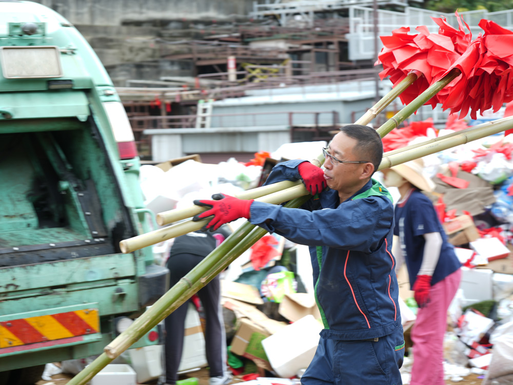 2日間の祭りが終わった翌朝も、集められたごみ分別・回収します。