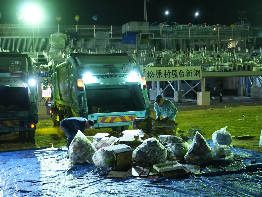 この祭りのあと、Himekan Groupの株式会社環境保全サービスでは、1日目の夜、そして祭り後の3日目に1日がかりで後片付け作業を行っています。
