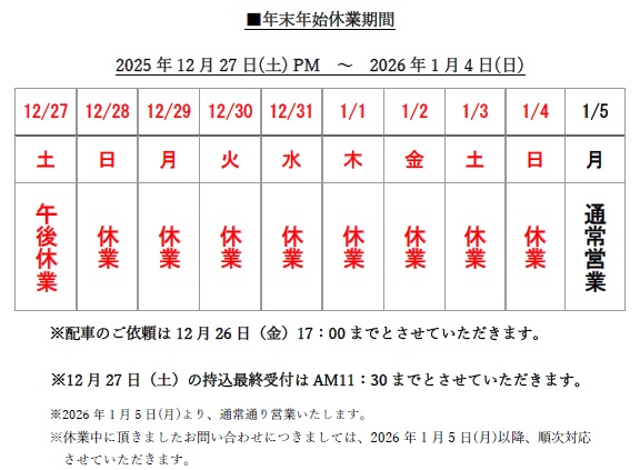 拝啓 時下ますますご清栄のこととお喜び申し上げます。平素は格別のご高配を賜り、厚くお礼申し上げます。弊社では、誠に勝手ながら下記日程を年末年始休業とさせていただきます。皆様には大変ご不便をおかけいたしますが、何卒ご了承くださいますよう、お願い申し上げます。
